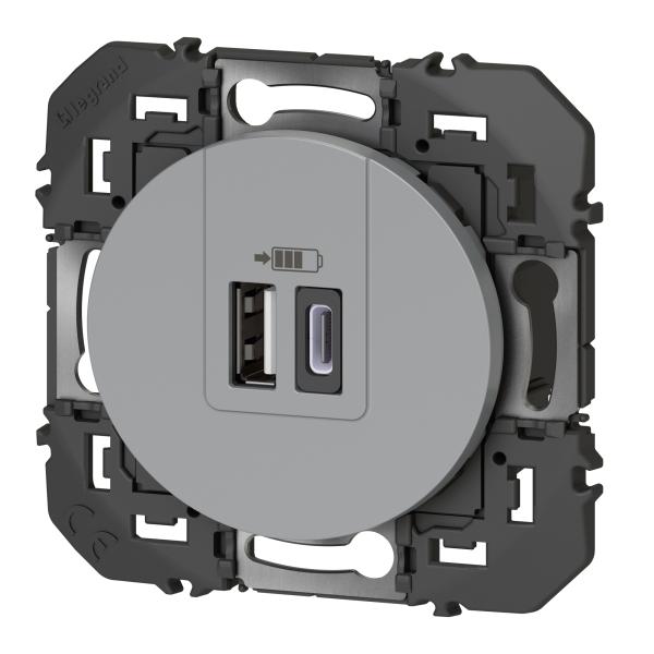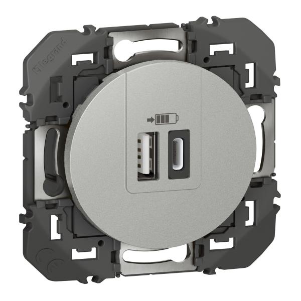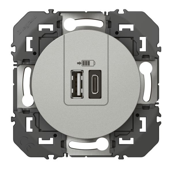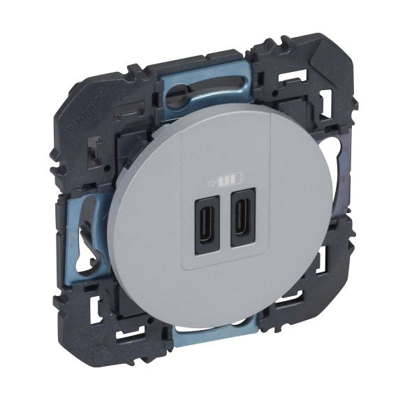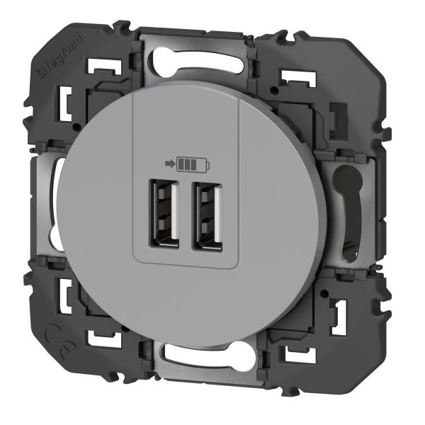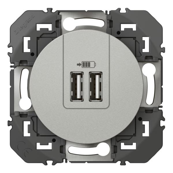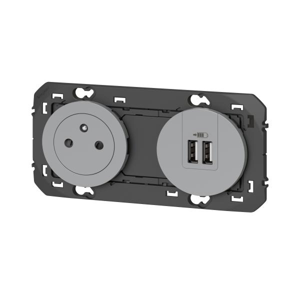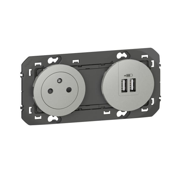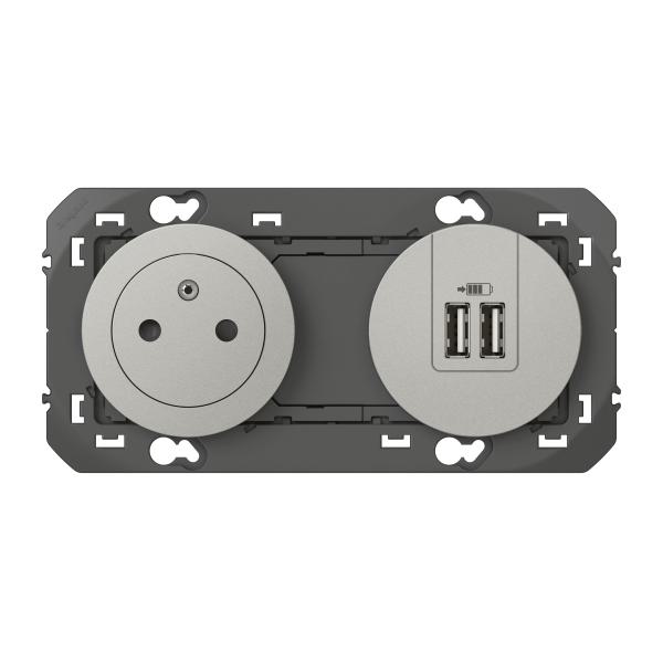 2P+T CHARGEUR USB 2POSTES ALU