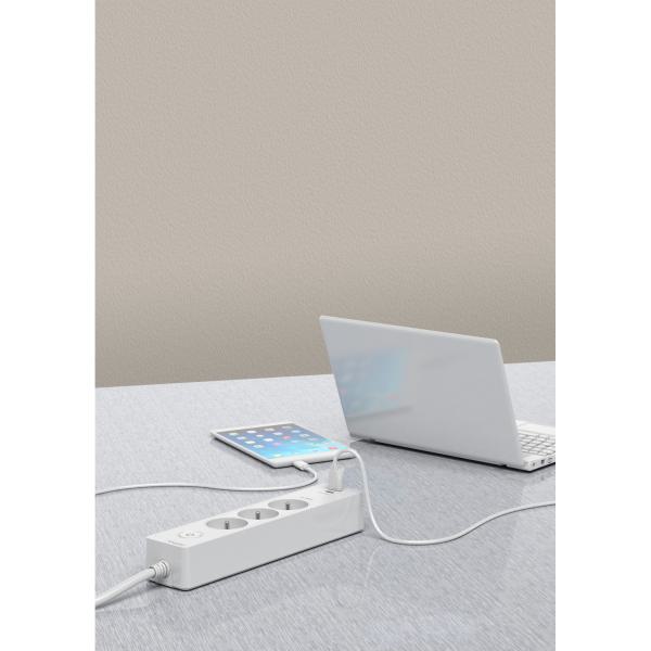 Multipr 3P 2USB 1,5m blc