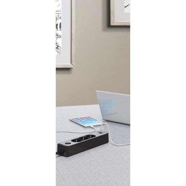 MULTIPR 3P 2USB 1,5M ANTH/BRON