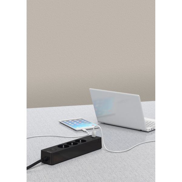 Multipr 3P blc/bois 2USB 1,5m