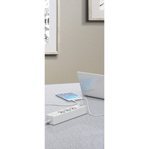 Multipr 3P 2USB 1,5m blc/alu
